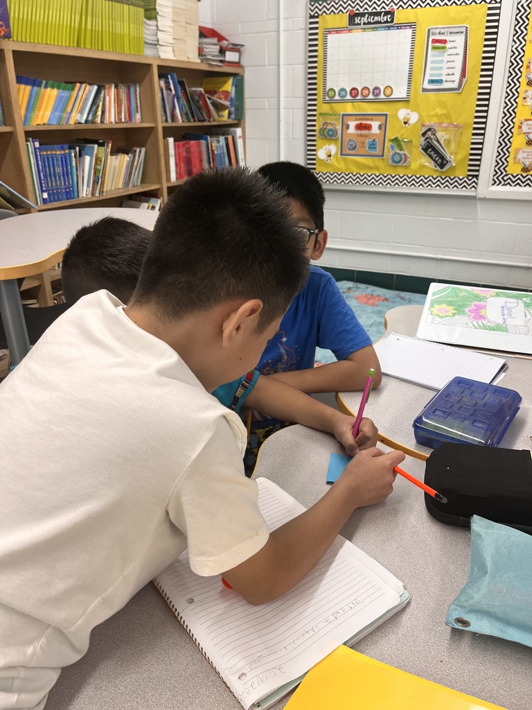These fourth graders are putting their spelling to the test with a dictation in their Spanish small groups with Ms. Velázquez. ✍