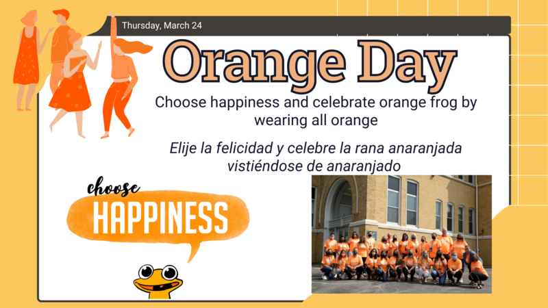 Join us for a spirit week filled with happiness! The day themes are listed below.
