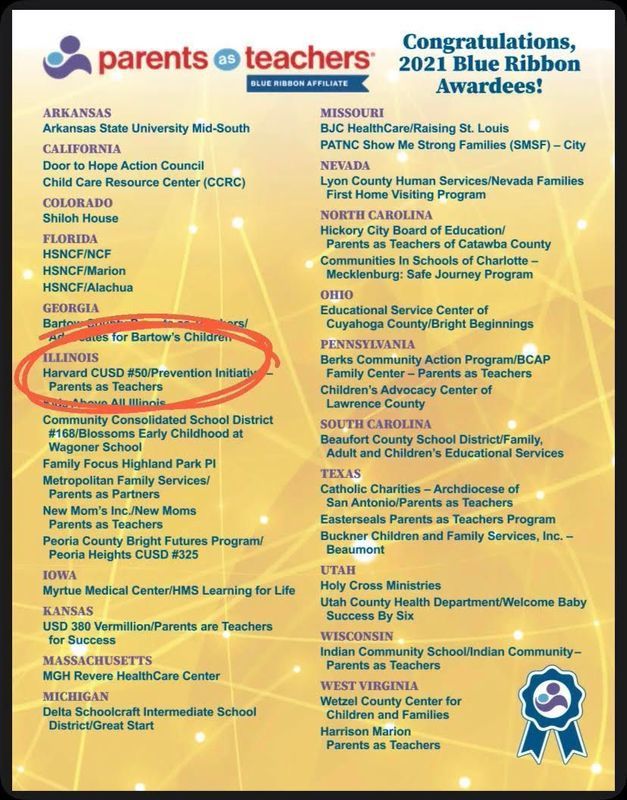 To earn the Blue Ribbon Quality Endorsement, affiliates must complete a comprehensive self-study and review process that demonstrates they are meeting or exceeding the Parents as Teachers Essential Requirements, along with at least 75 of the 100 Quality Standards. Congratulations! #HarvardRising